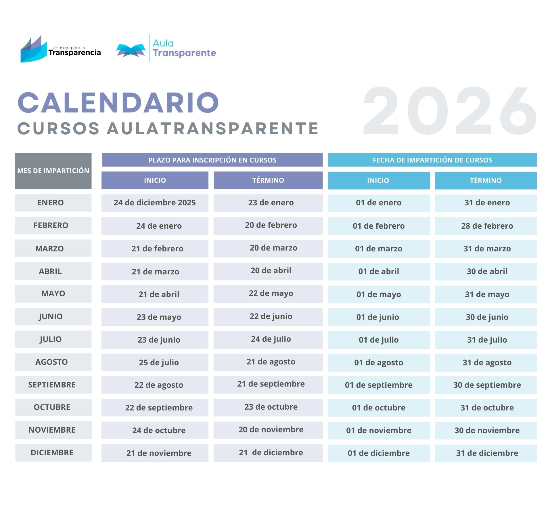 Calendario cursos